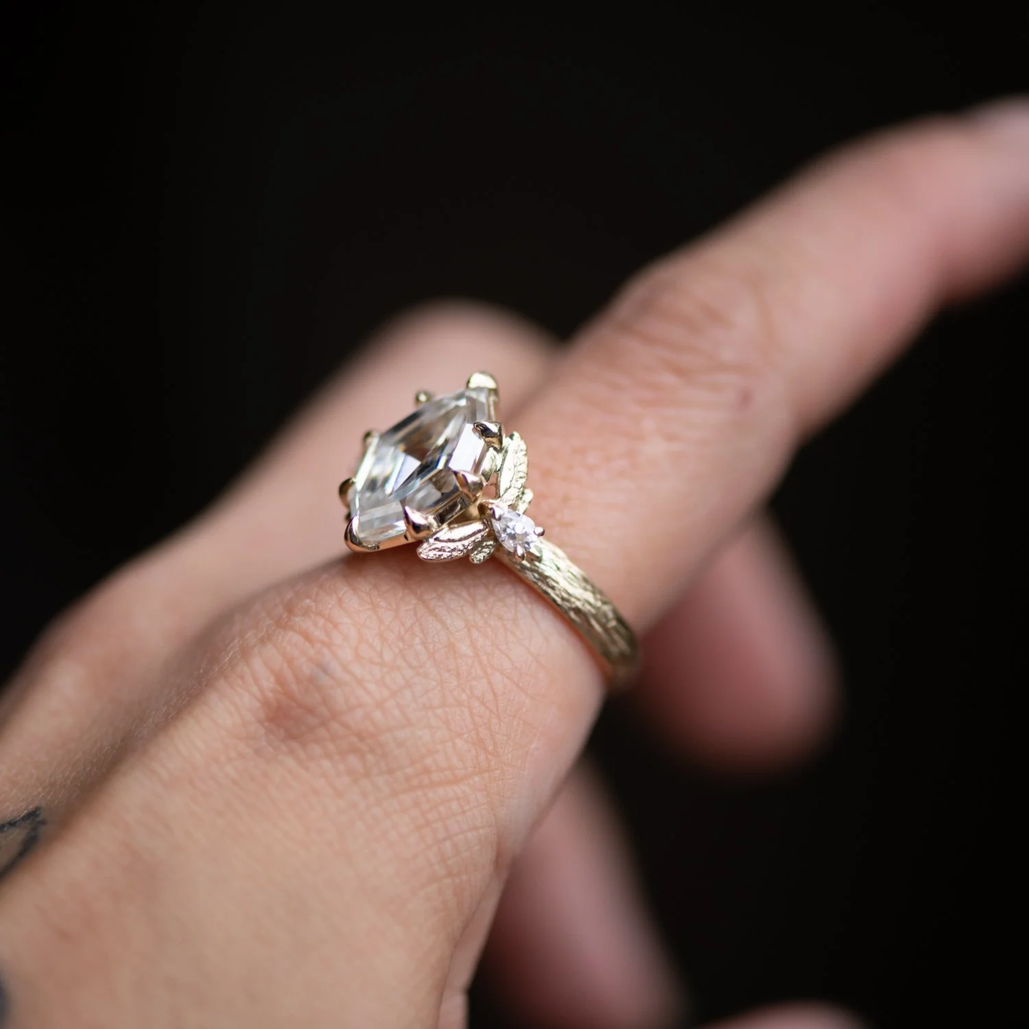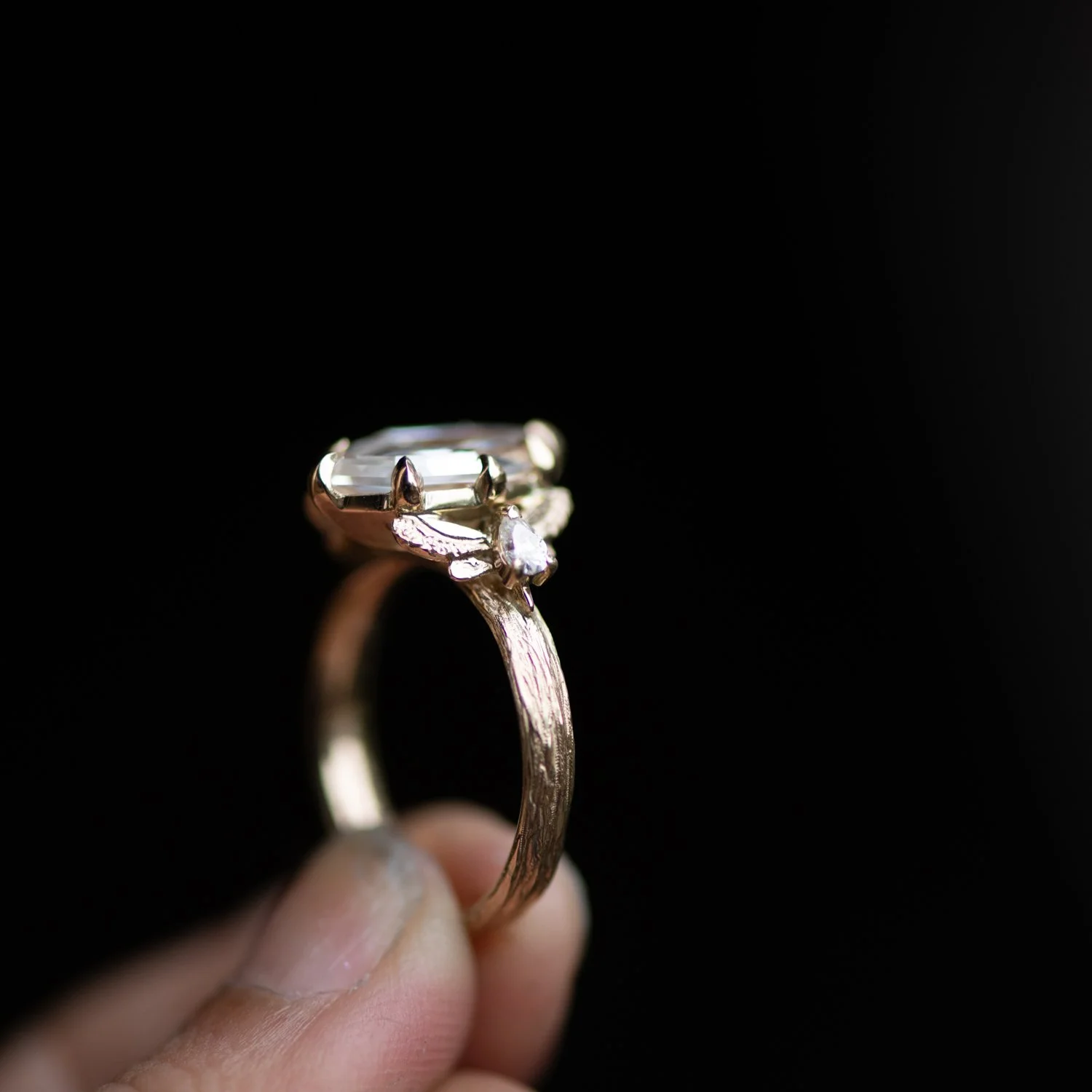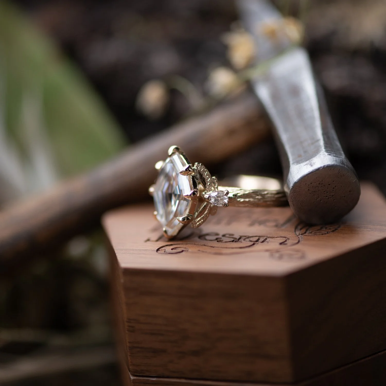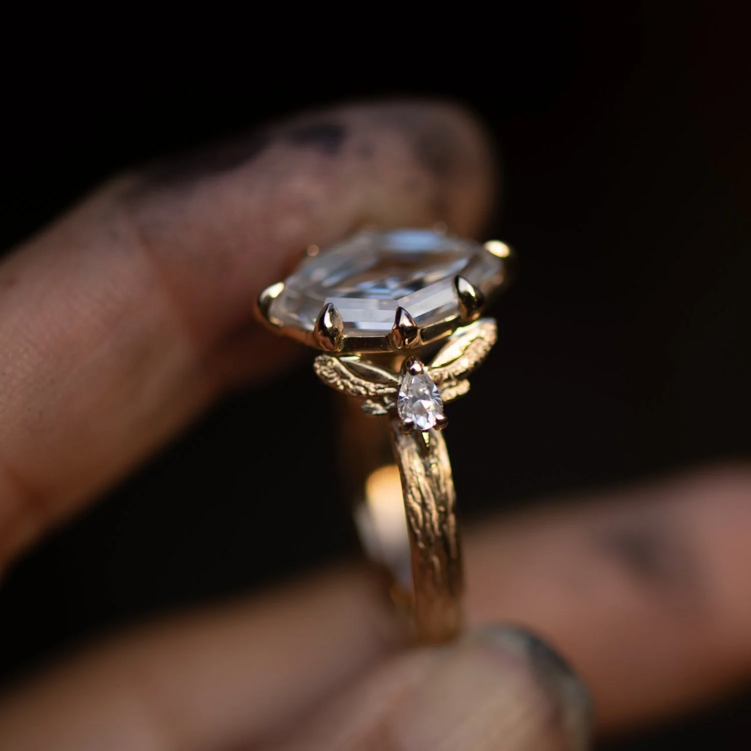 One is a young moth, with full scrollwork antennae and intact wings, and a white opal. The other is an old moth, decaying, with broken antennae and tattered wings. It's opal is black.