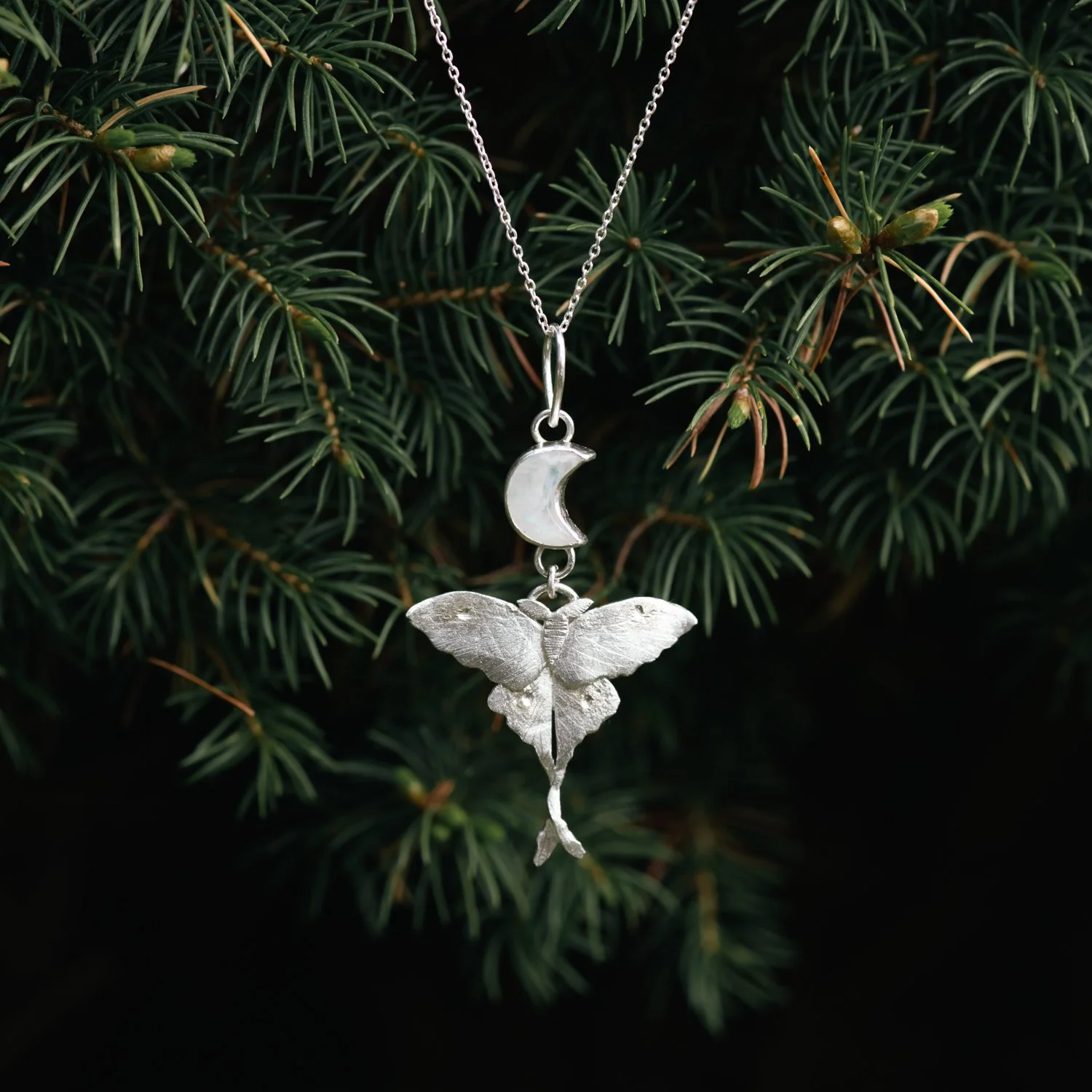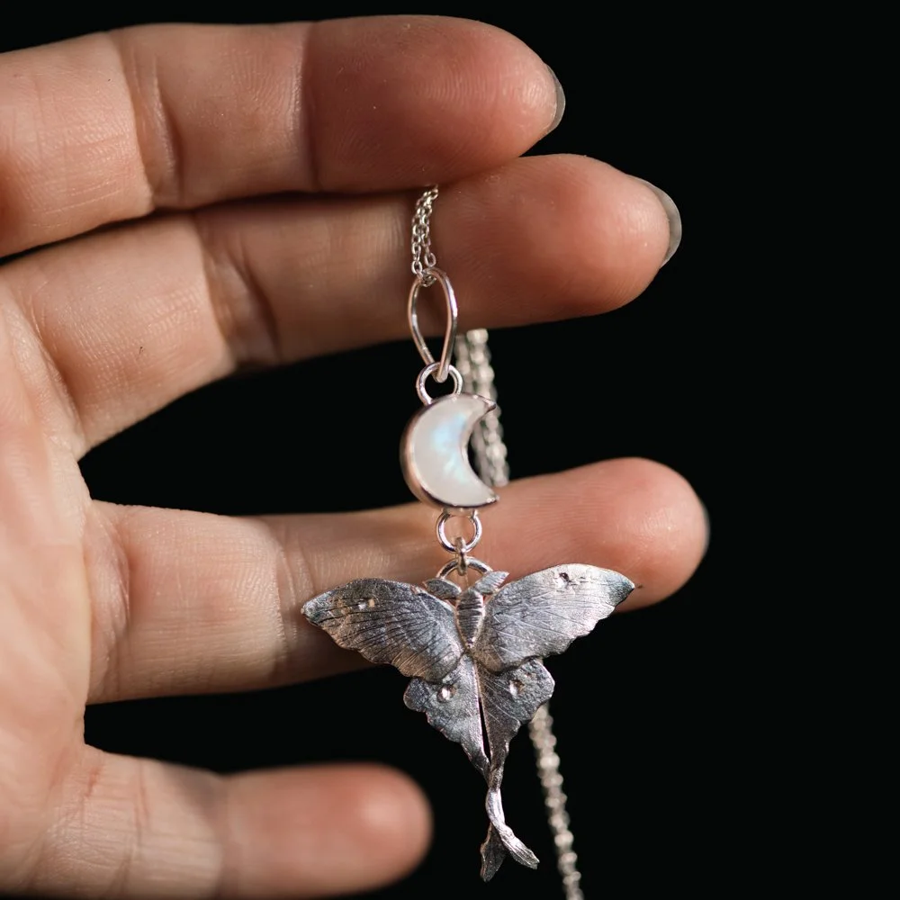 I make a small collection of designs based on Luna moths at least once a year, scroll further down to see some of them, as well as some pillbugs.